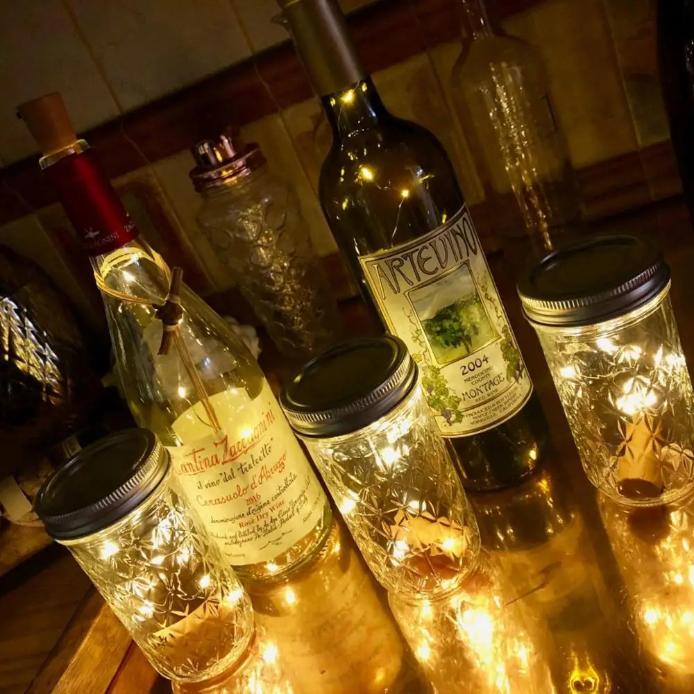 Гирлянда на батарейках, светильники в форме винных бутылок с пробко...