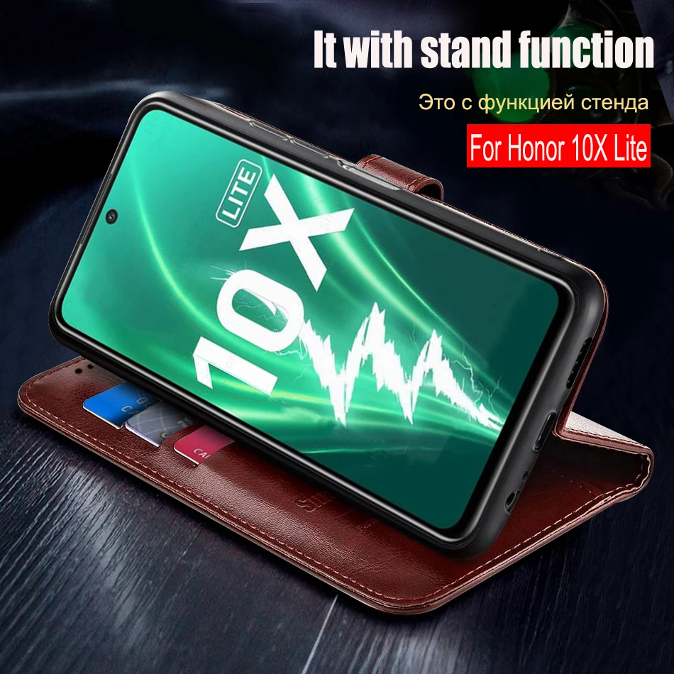 Чехол-книжка для Honor 10X Lite, кожаный, с магнитной застежкой