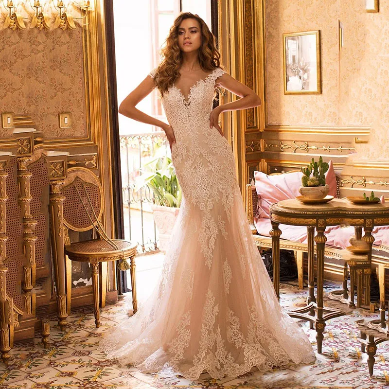 Женское свадебное платье с юбкой-годе, с кружевной аппликацией