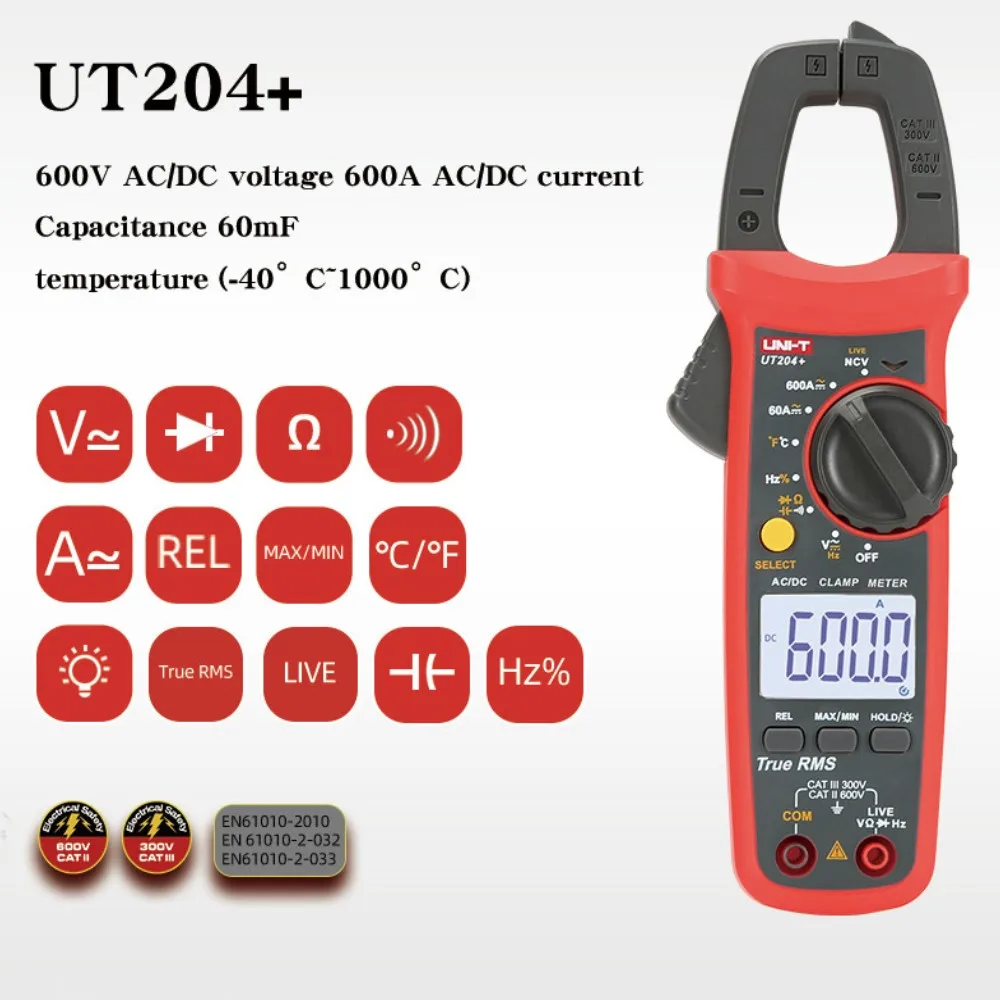 UNI-T UT202 +UT203 + 400-600A Токоизмерительные клещиАвтоматический диапазон True RMS Высокая точность цифровой мультиметр постоянной ёмкости, универсальный конденсатор тестер сопротивления