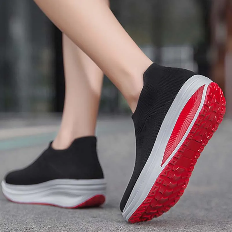 Кроссовки-носки женские без шнуровки, Вулканизированная подошва, модная обувь на платформе, 2021