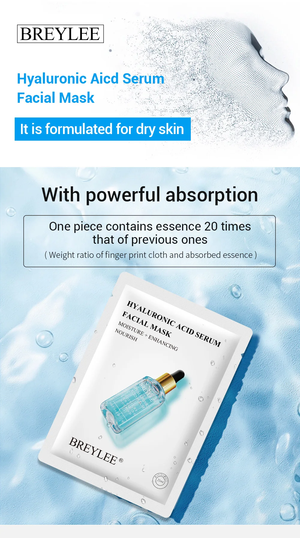 BREYLEE маска для лица Гиалуроновая кислота сыворотка антивозрастной увлажняющий уход за кожей лица эссенция Маска питательная выцветание тонкие линии Repaire