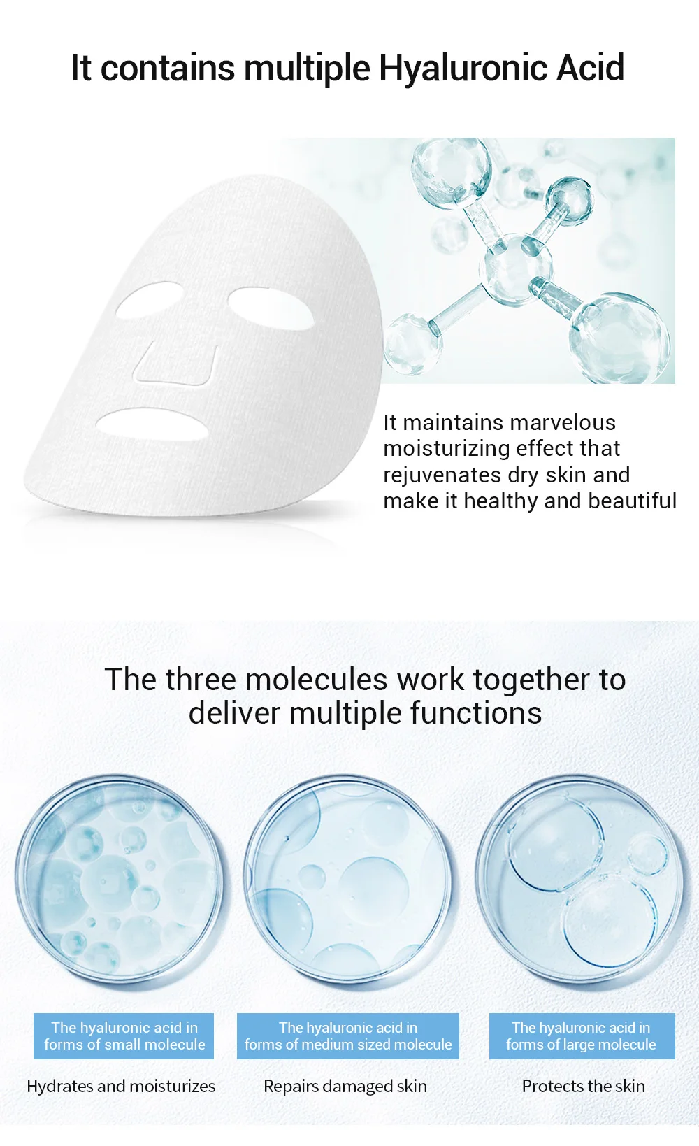Гиалуроновая кислота сыворотка маска для лица увлажняет и питает в избытке молекулы гиалуроновой кислоты, она оказывает сильное увлажнение для эффективного решения обезвоженной и сухой кожи и восстановления упругости кожи.