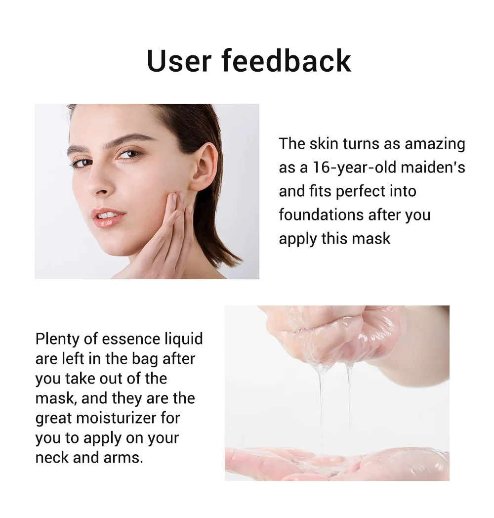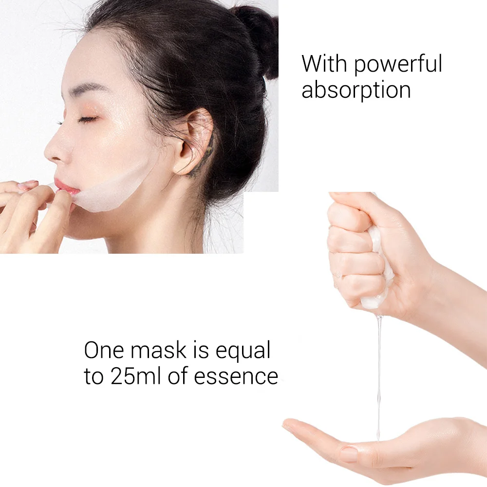С мощным поглощением одна штука содержит эссенцию в 20 раз больше, чем у предыдущих (коэффициент веса ткани для печати пальцев и впитываемая эссенция) при использовании японской шелковой маски продукт не содержит масла с мощным поглощающим и мягким, чтобы кожа обрезала его, чтобы соответствовать вашему лицу, одна маска равна 25 мл эссенции