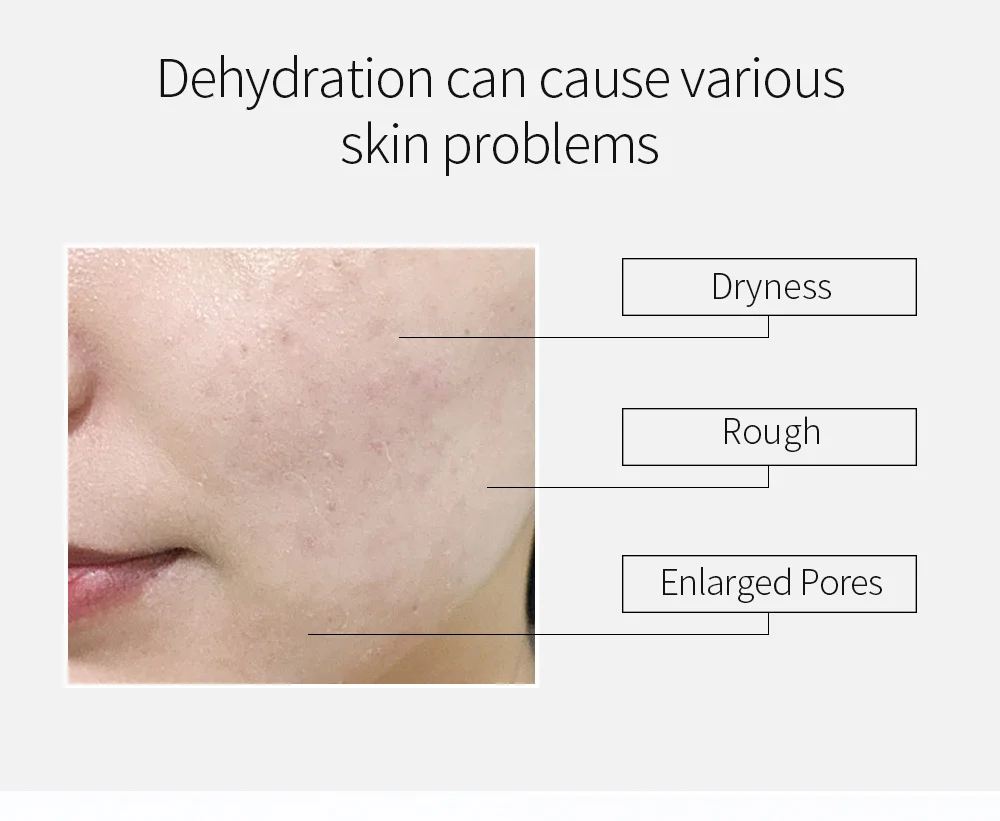 Обезвоживание может вызвать различные проблемы с кожей, акне, аллергия на тонкие линии, пятна, увеличенные поры, сухость