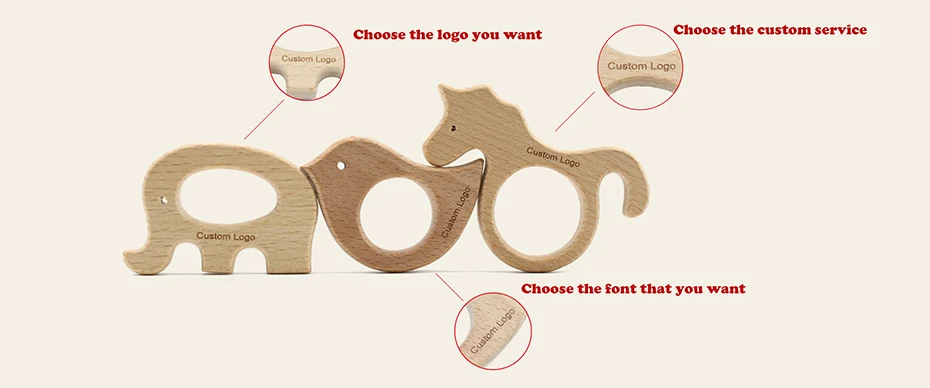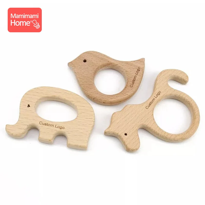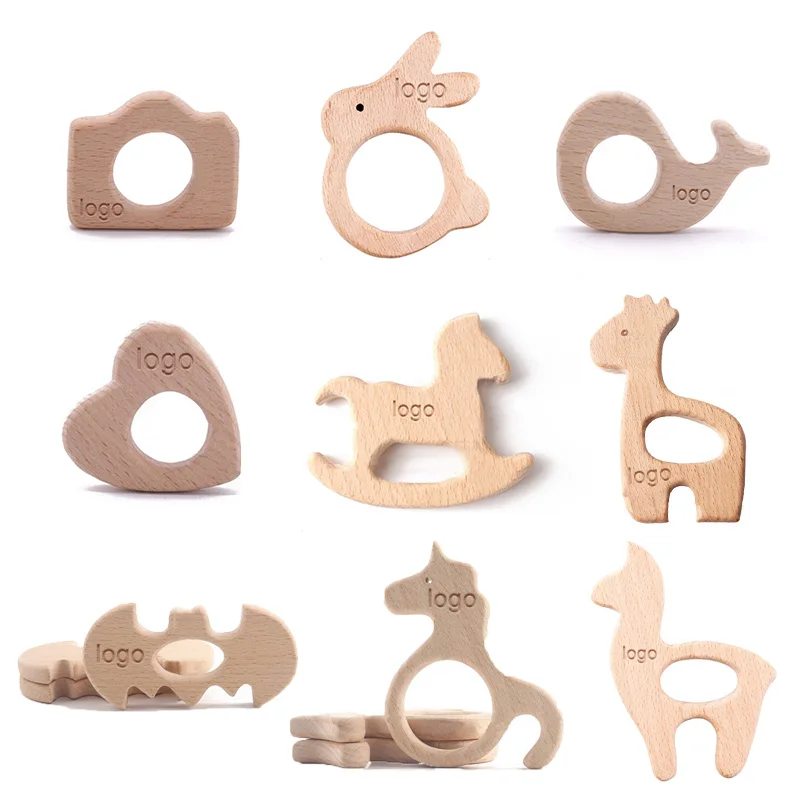 Детский деревянный Прорезыватель для зубов, грызунок без бисфенола А, с логотипом на заказ, 50 штук
