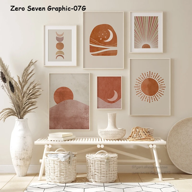 Абстрактные принты на холсте с изображением солнца, звезд, Луны, фазы, пейзажа, плакаты, настенные картины, украшения для гостиной, современный дом