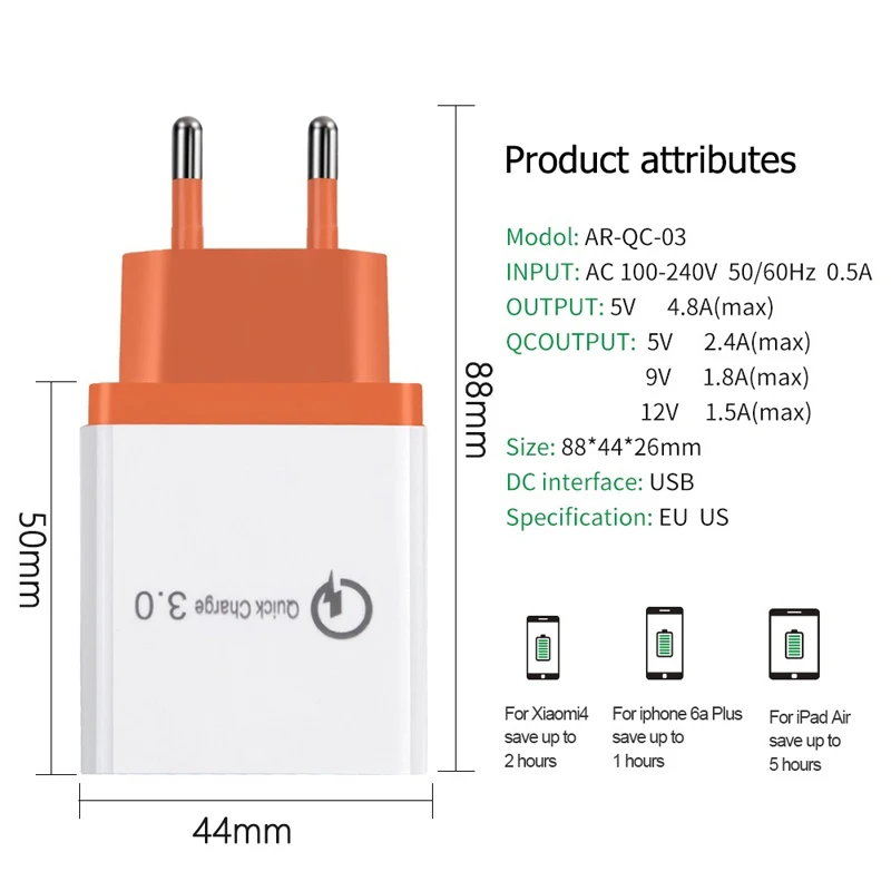 Зарядное устройство USB QC3.0, 18 Вт, быстрое настенное зарядное ус...