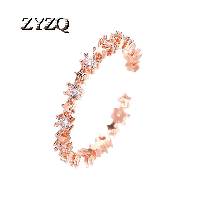 Кольцо женское, регулируемое, с фианитом, со звездами