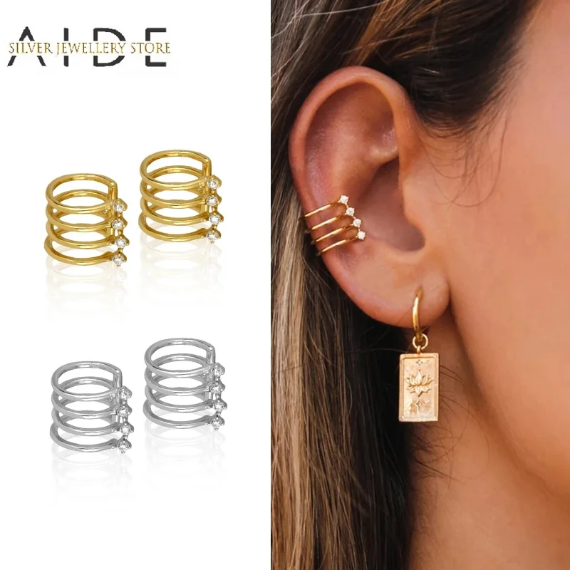AIDE персонализированные 4 слоя ушные манжеты минимализм Инс глянцевые не пирсинг Клипсы Серьги для женщин серебро 925 ювелирные изделия kolczyki