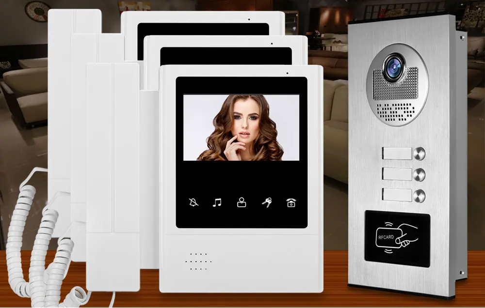 Проводной дверной видеозвонок с радиочастотной идентификацией, домофон 4,3 дюйма, внутренний монитор, дверной звонок с ночным видением и кнопкой вызова для разных квартир