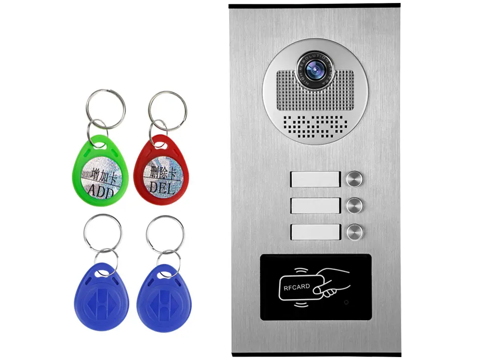 Наружная камера встроена в rfid-считыватель, с этой функцией вы можете открыть дверь с помощью rfid-карты ключа снаружи. Поддержка 500 пользовательских карт в общей сложности. Рабочая частота RFID карт/брелков 125 кГц, EM ID типа.