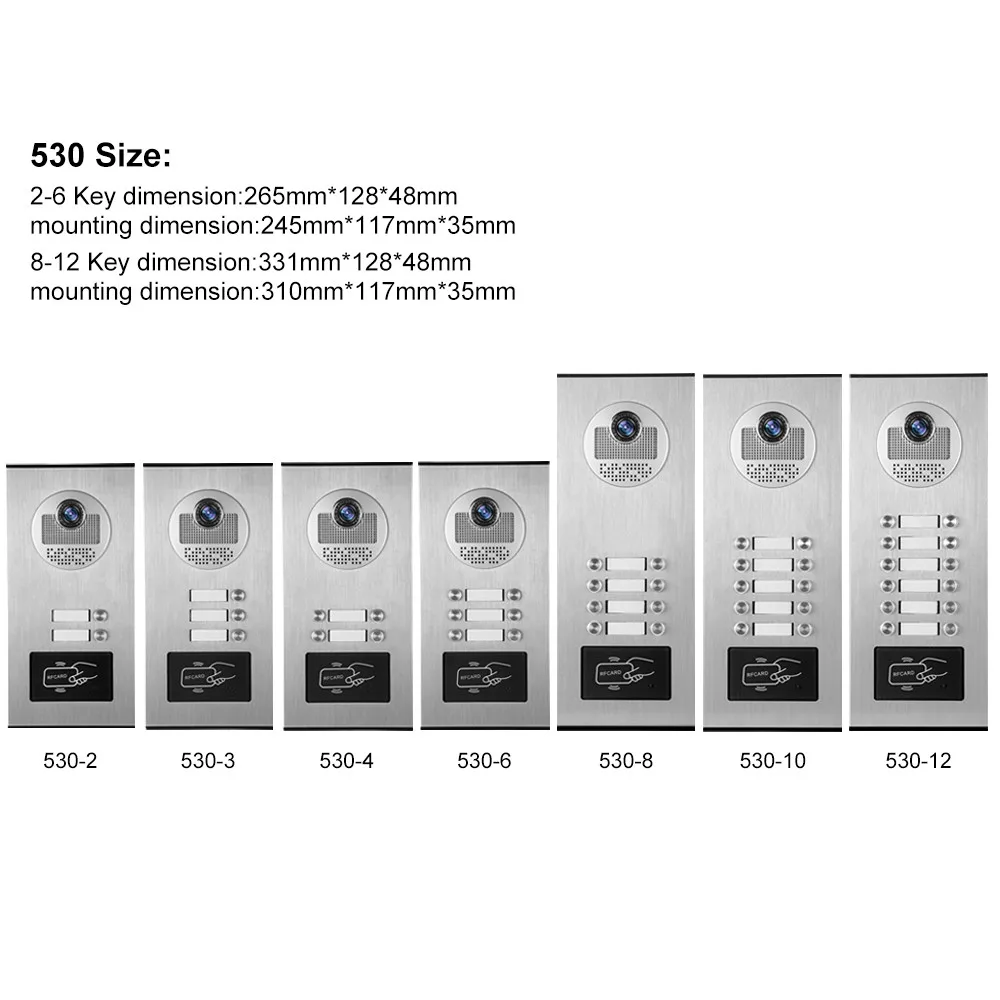 У нас есть камера с 2 / 4 / 6 / 8 / 10 / 12 кнопок. Если вы хотите другой товар, пожалуйста, свяжитесь с нами. Размер 520C-2 /3 /4 /6: 265 мм * 128 мм * 48 мм; Монтажный размер: 245 мм * 117 мм * 35 мм Размер 520C-8 /10/ 12: 311 мм * 128 мм * 48 мм; Монтажный размер: 310 мм * 117 мм * 35 мм
