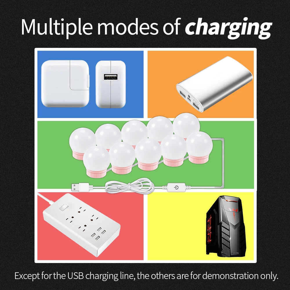 Преимущества:*Светодиодный зеркальный светильник Vanity в голливудском стиле, новейший дизайн, усовершенствованная версия, более красивый и удобный.