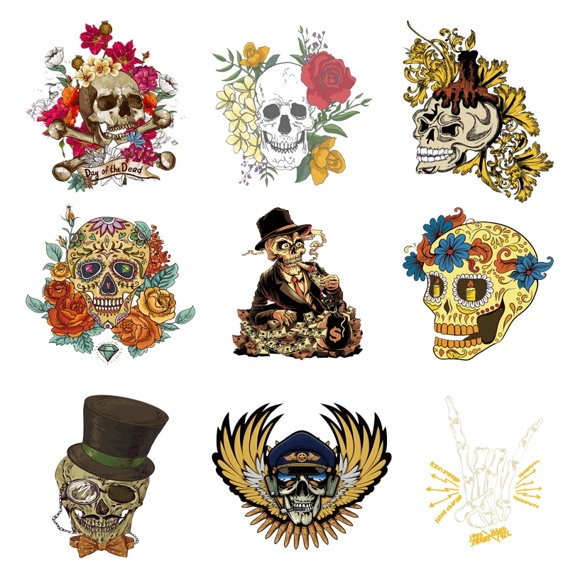 Термонаклейки для одежды термо-Стикеры для одежды Diy панк черепа горный хрусталь аппликации для куртки ПВХ патч плавкая вставка в полоску рок аппликации C