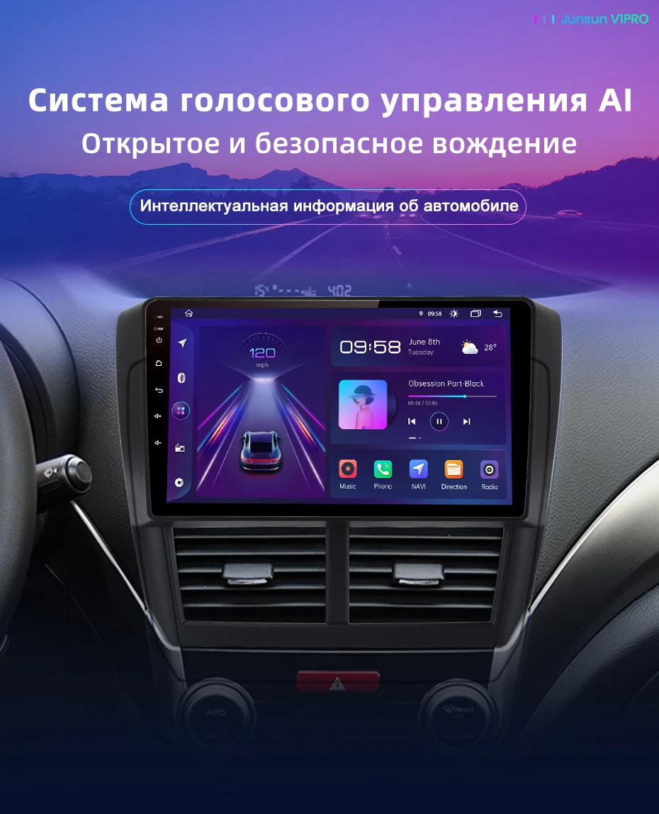 Junsun V1pro AI Голосовое CarPlay Автомагнитола Магнитола Мультимедиа автомобиля для Subaru Forester 3 SH Impreza 2007-2013 2008 2009 2010 Android auto 4G GPS трекер навигатор 2 DIN 2 дин андройд Аудио Автомагнитолы