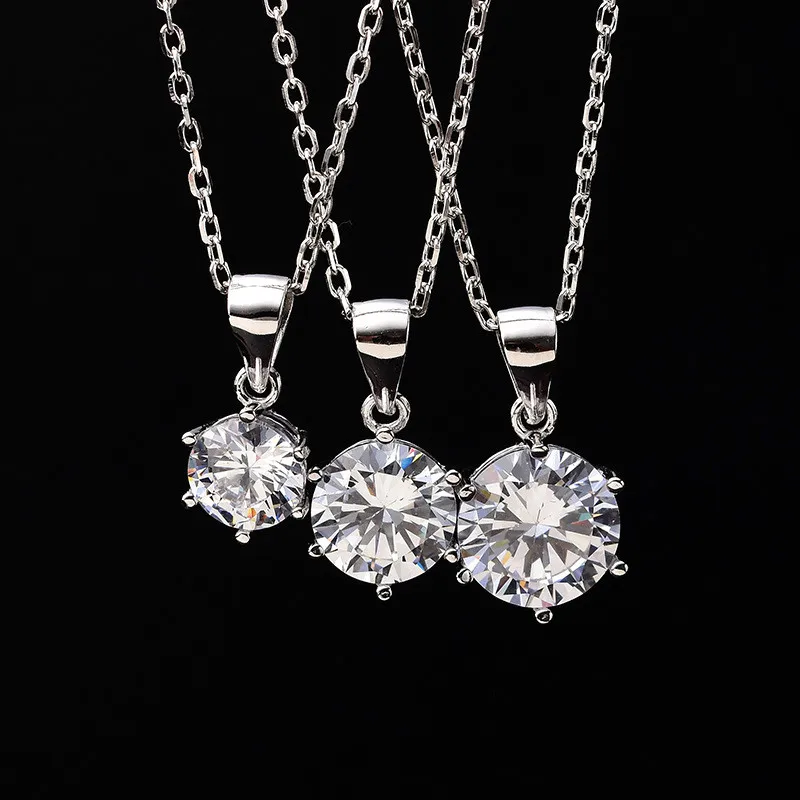 Кулон под драгоценный камень 1ct-3ct с муассанитом D, ожерелье из стерлингового серебра 925 пробы с шестью когтями для женщин, Классическая Бесплатная Цепочка
