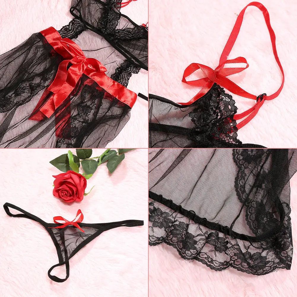 Для женщин кружевное сексуальное дамское нижнее белье эротическое платье + стринги Эротическое комплект сексуальное нижнее белье размера плюс M-3XL пеньюары