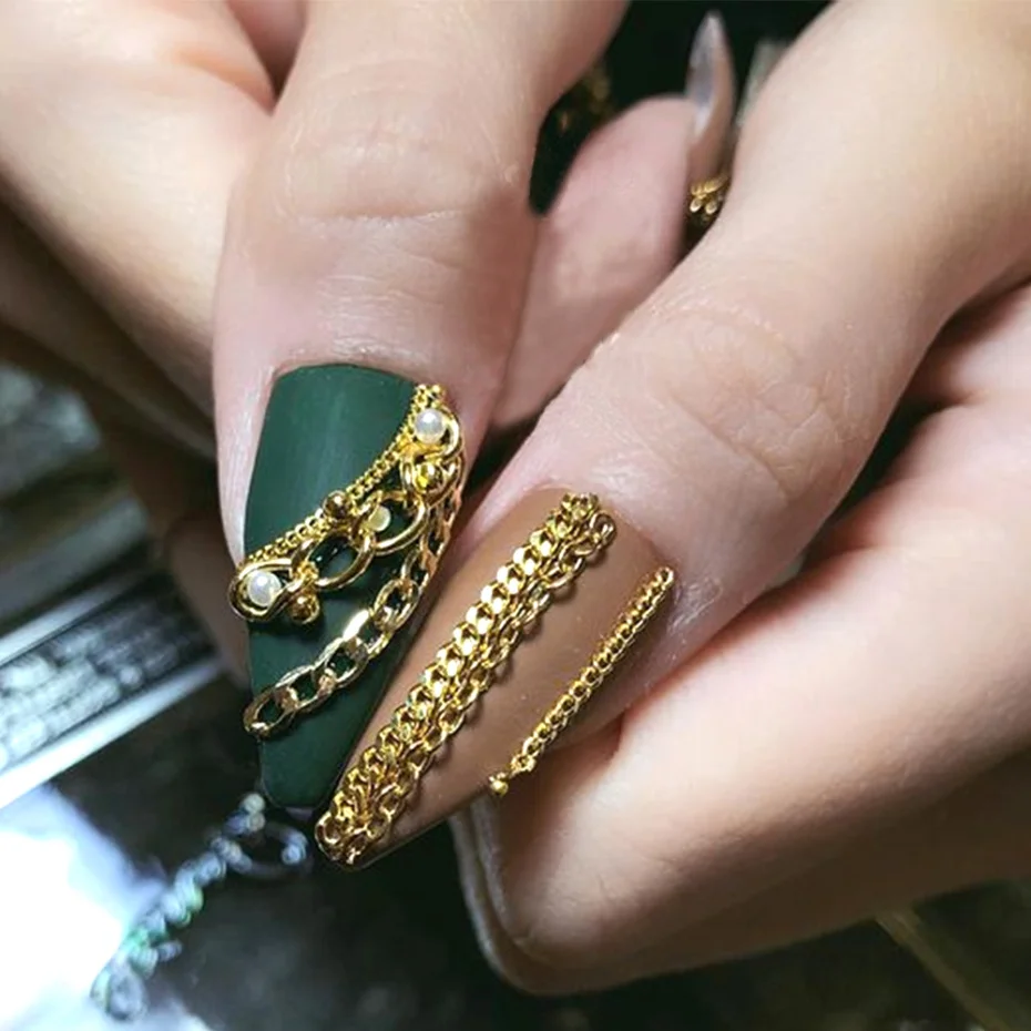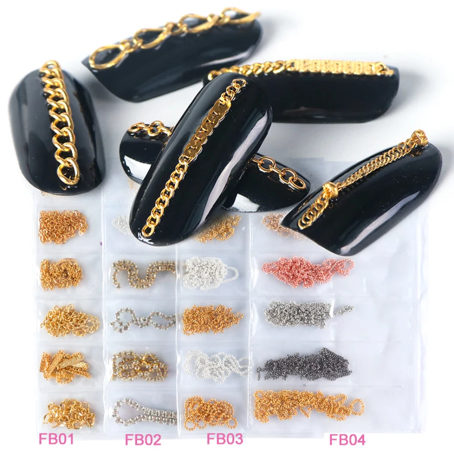 1 пакет металлическая цепочка модные хрустальные гвоздики украшения для дизайна ногтей Золотой Серебряный УФ-лак для гель-лака для маникюра DIY Подвески для салона Поставки Женских