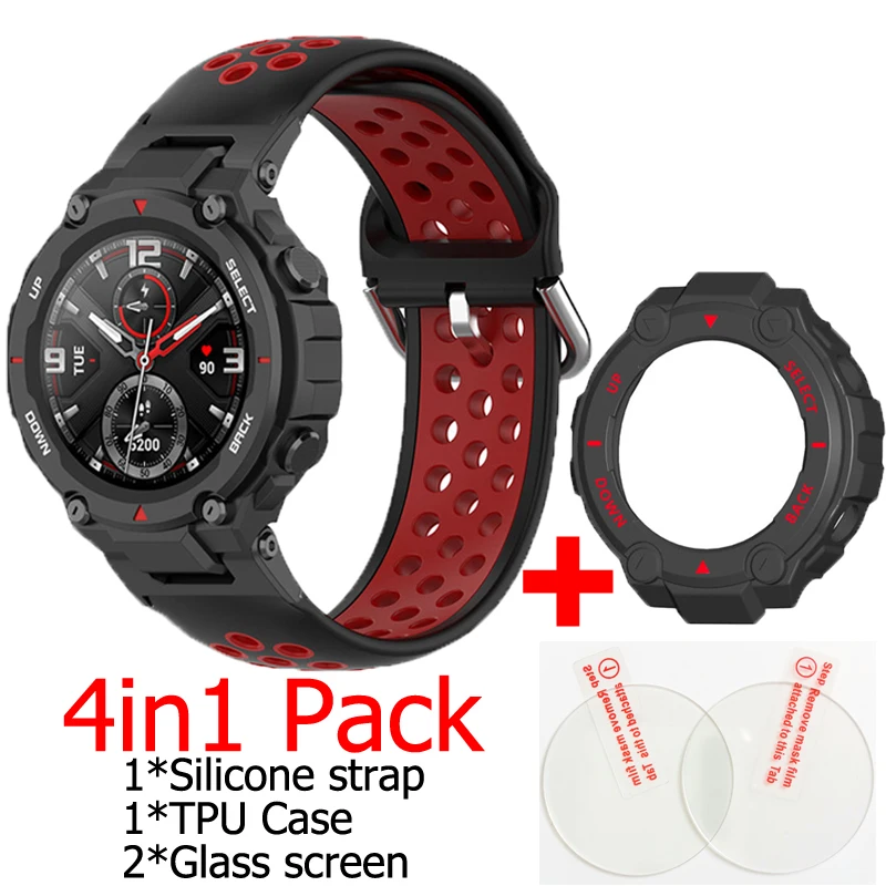 Силиконовый ремешок 4 в 1, браслет для Huami Amazfit T-Rex, чехол для Xiaomi Amazfit T REX, стеклянная пленка для экрана