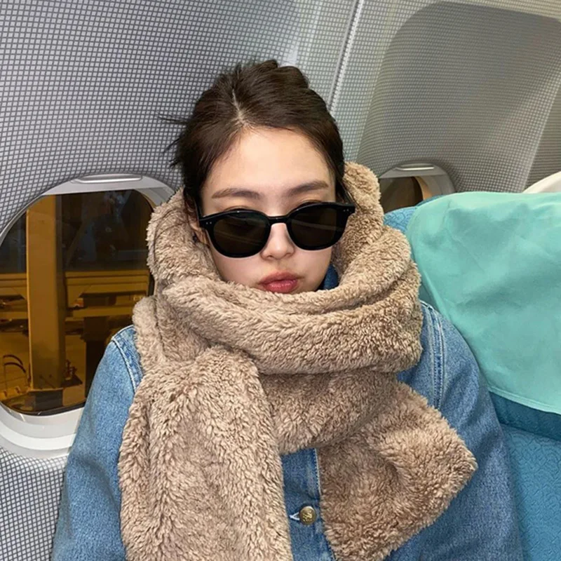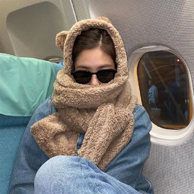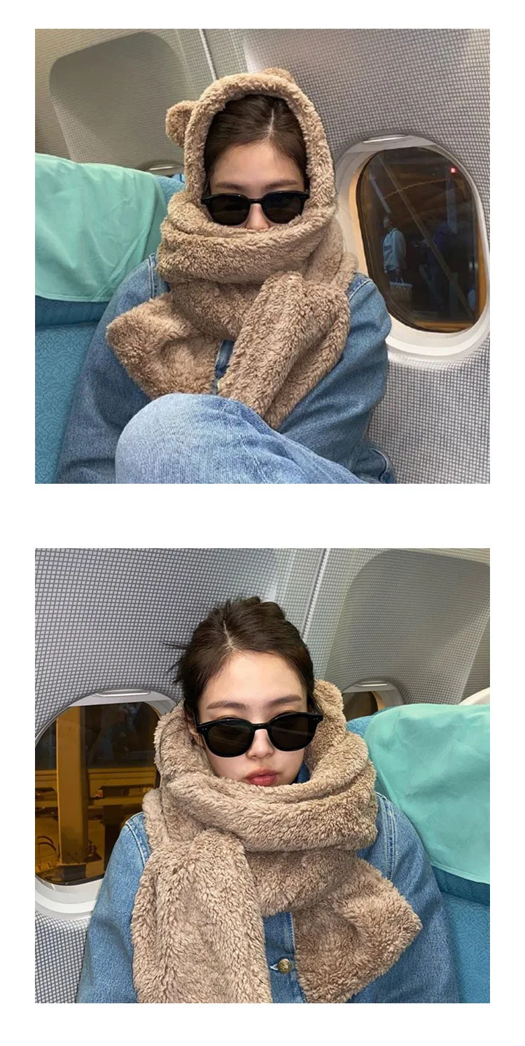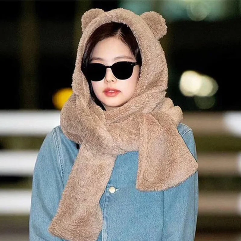 Шапка бини шапка с защитой ушей медведя Женская Осень-зима милый плюшевый нагрудник шарф перчатки с капюшоном Корейская версия универсальные теплые