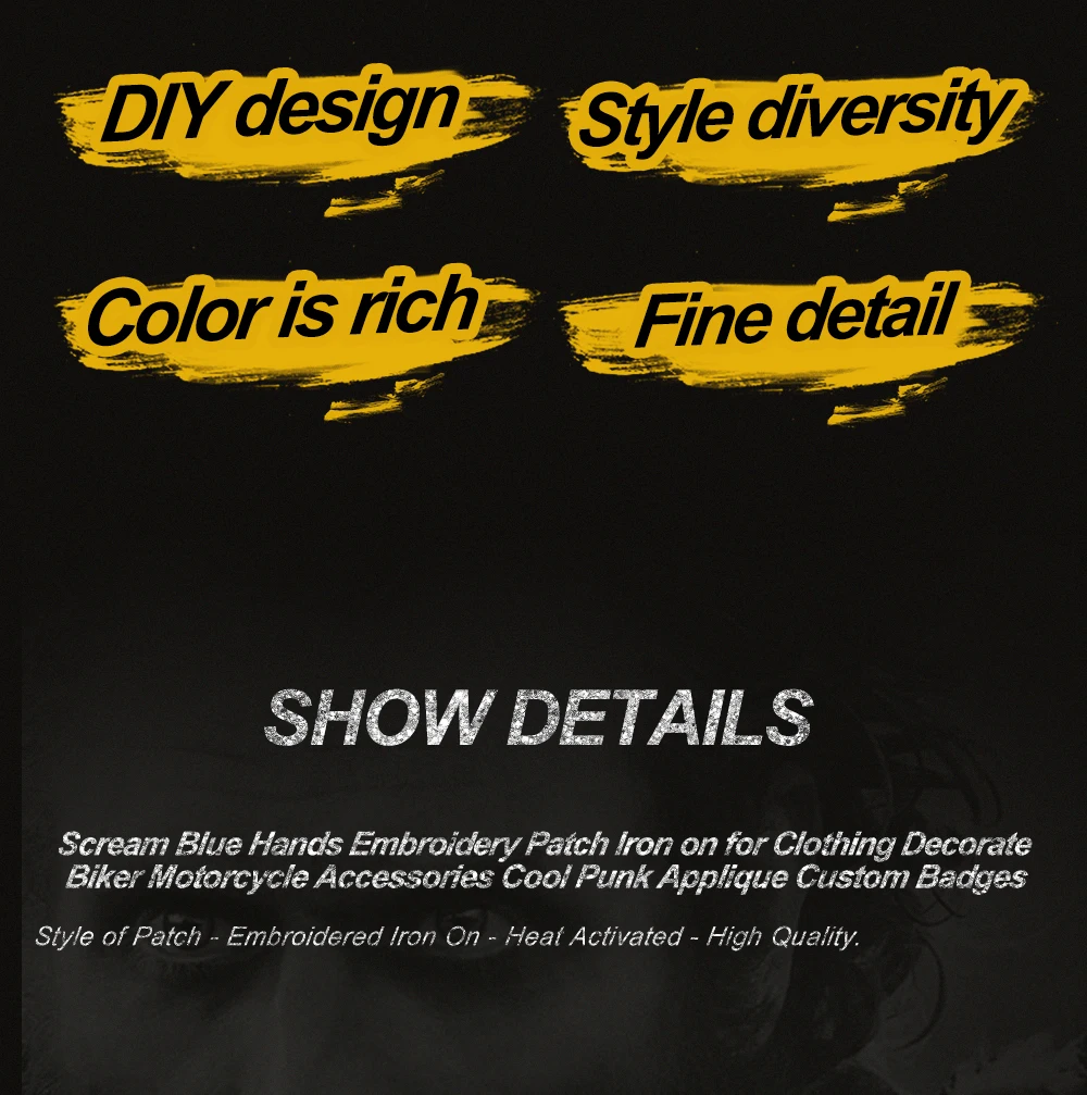 Кричащие синие руки вышивка патч железо для одежды украшения байкерские аксессуары для мотоциклов крутая Аппликация в стиле панк пользовательские значки