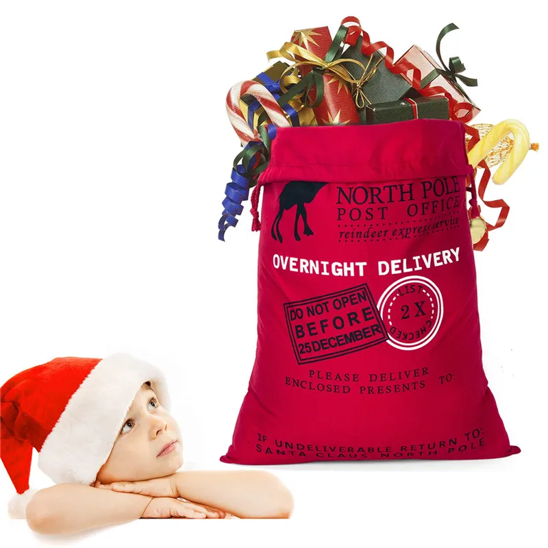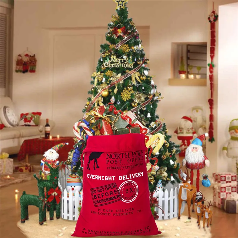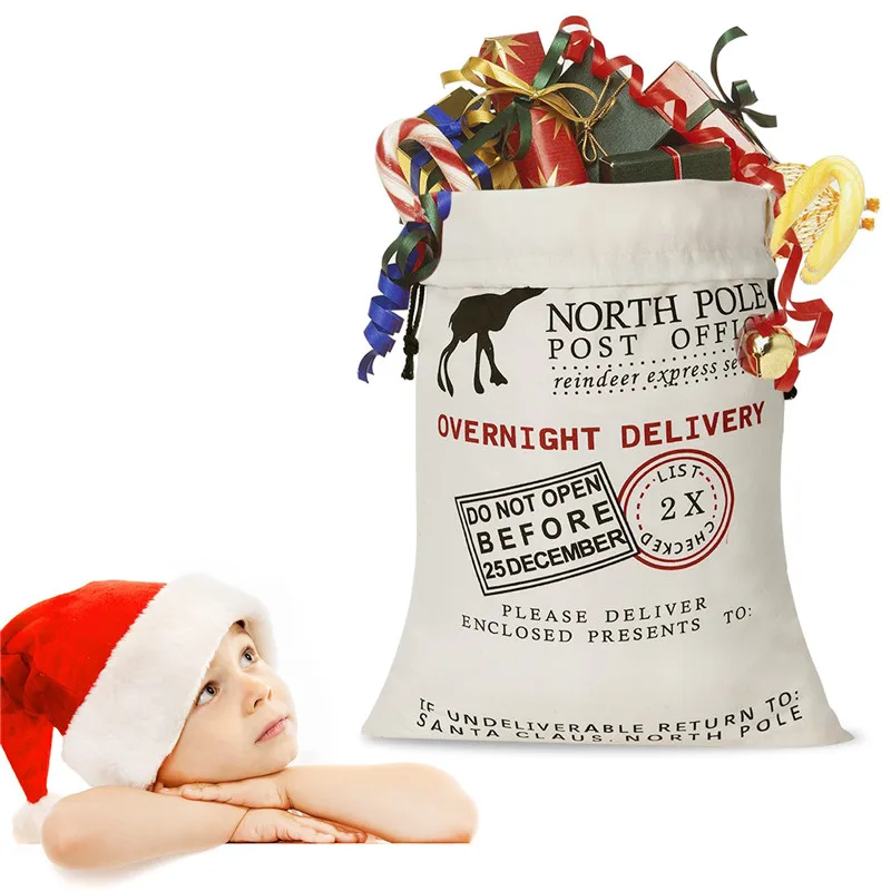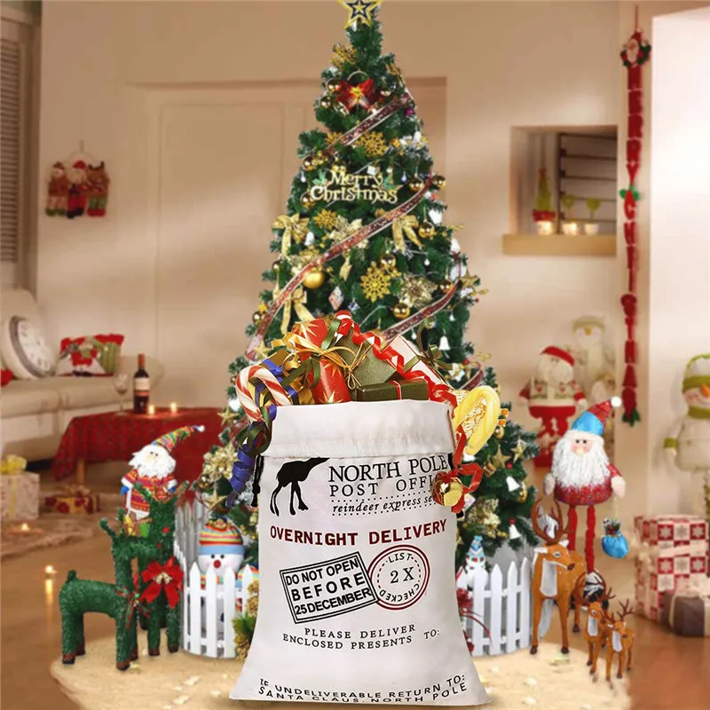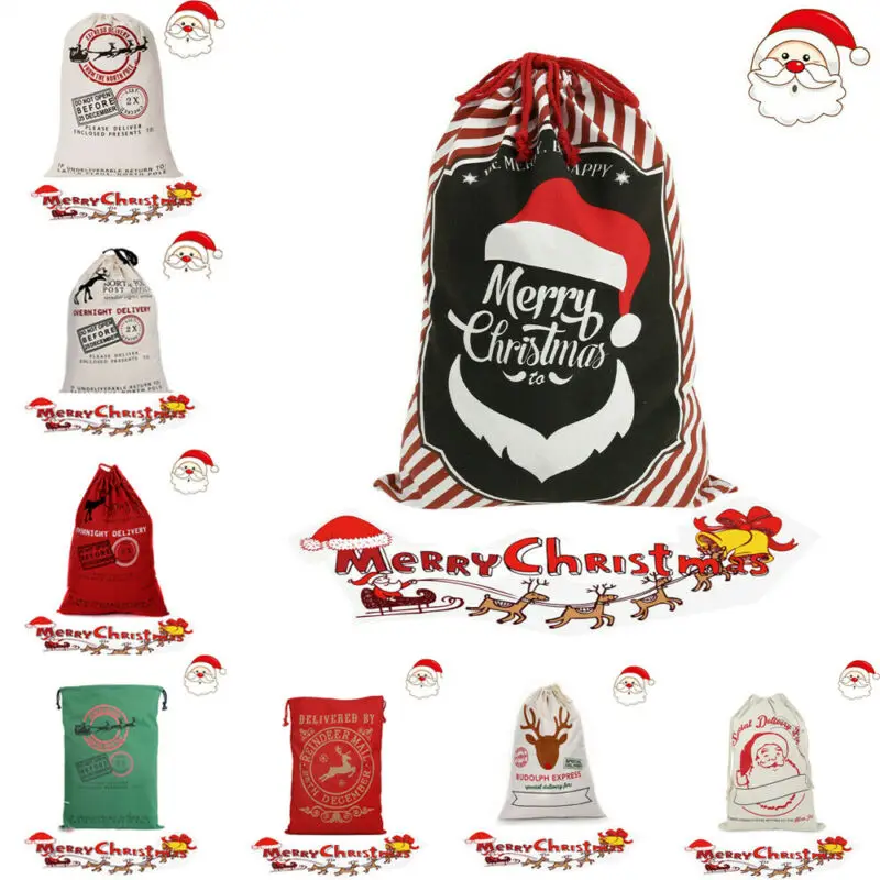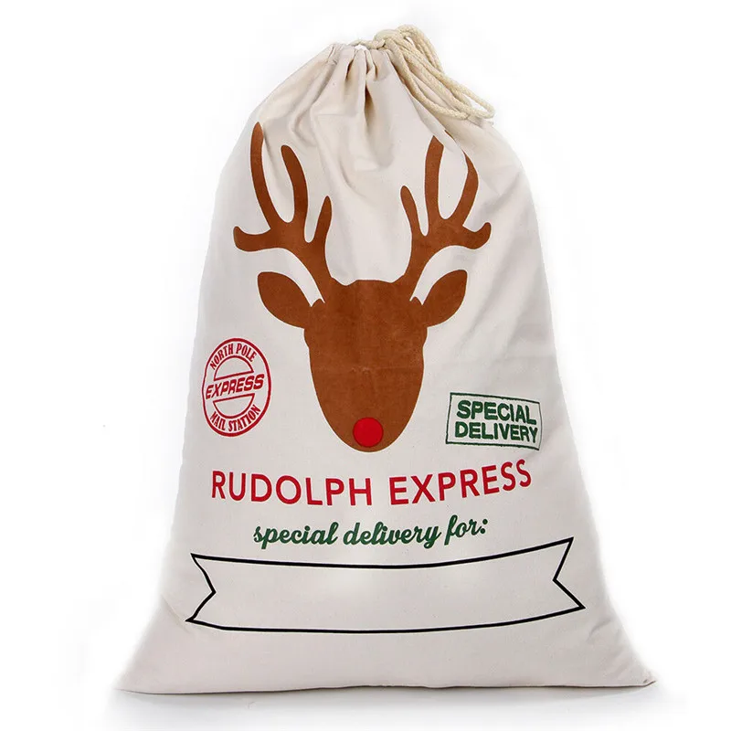 Большая Рождественская Подарочная сумка, украшения для рождественских подарков, Санта-Клаус на заказ, хлопчатобумажные холщовые мешки для хранения конфет на шнурке 50x70 см