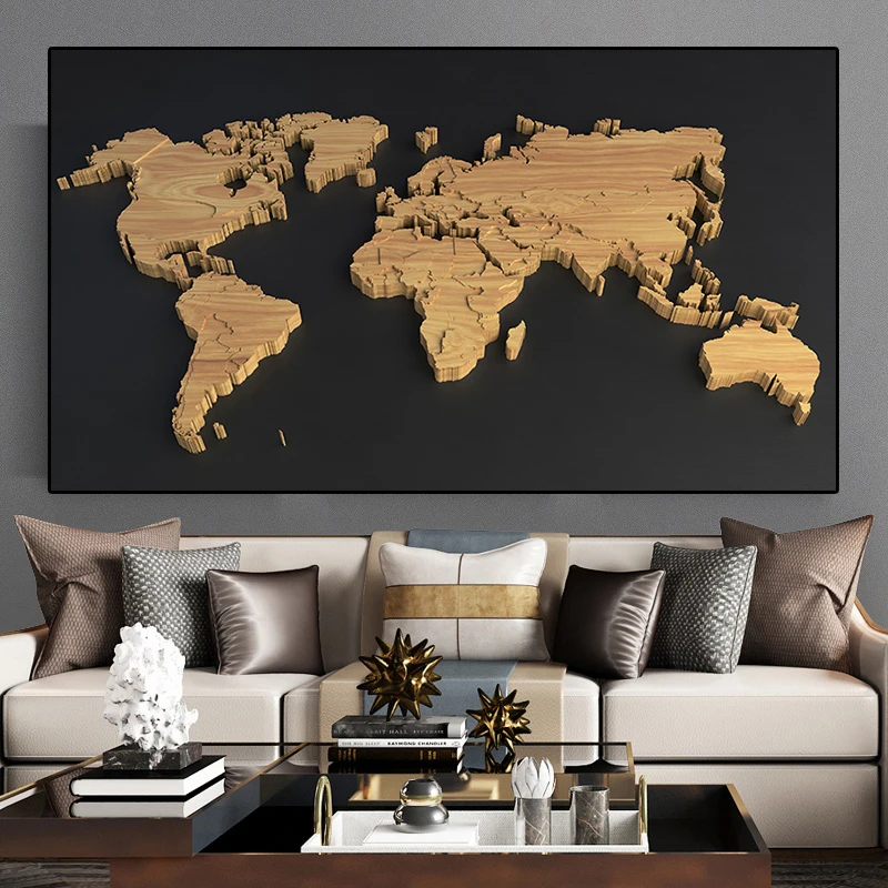 Скандинавская карта мира, картина для декора гостиной, винтажная 3D...