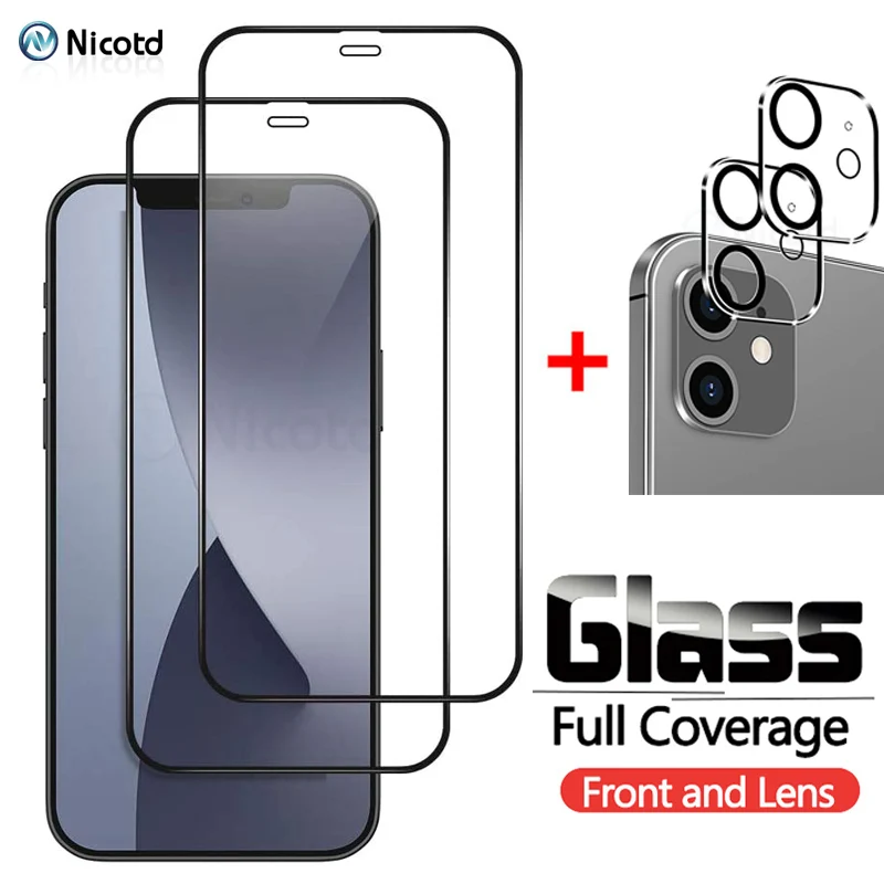 2 шт. переднее закаленное стекло + 2 шт. стекло для объектива задней камеры для iPhone 12 Pro Max защита для объектива камеры для iPhone 12 Pro Mini