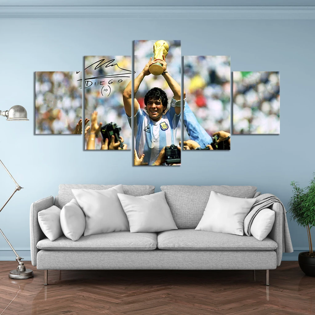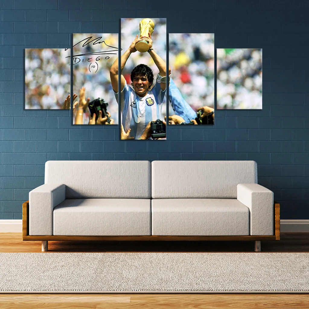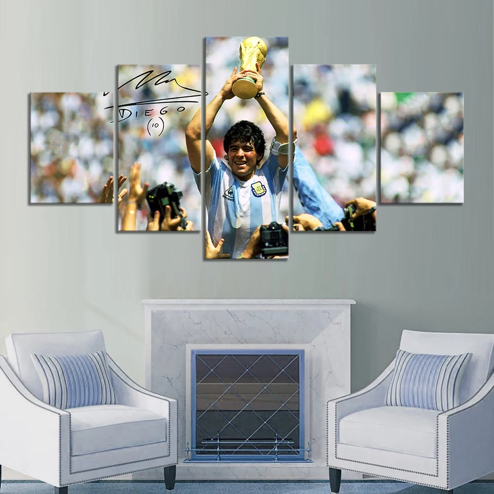 5 шт. HD картина Диего Марадона, Футбольная легенда, Эль десять, футбол, суперзвезда, постер, холст, настенные картины для декора спальни