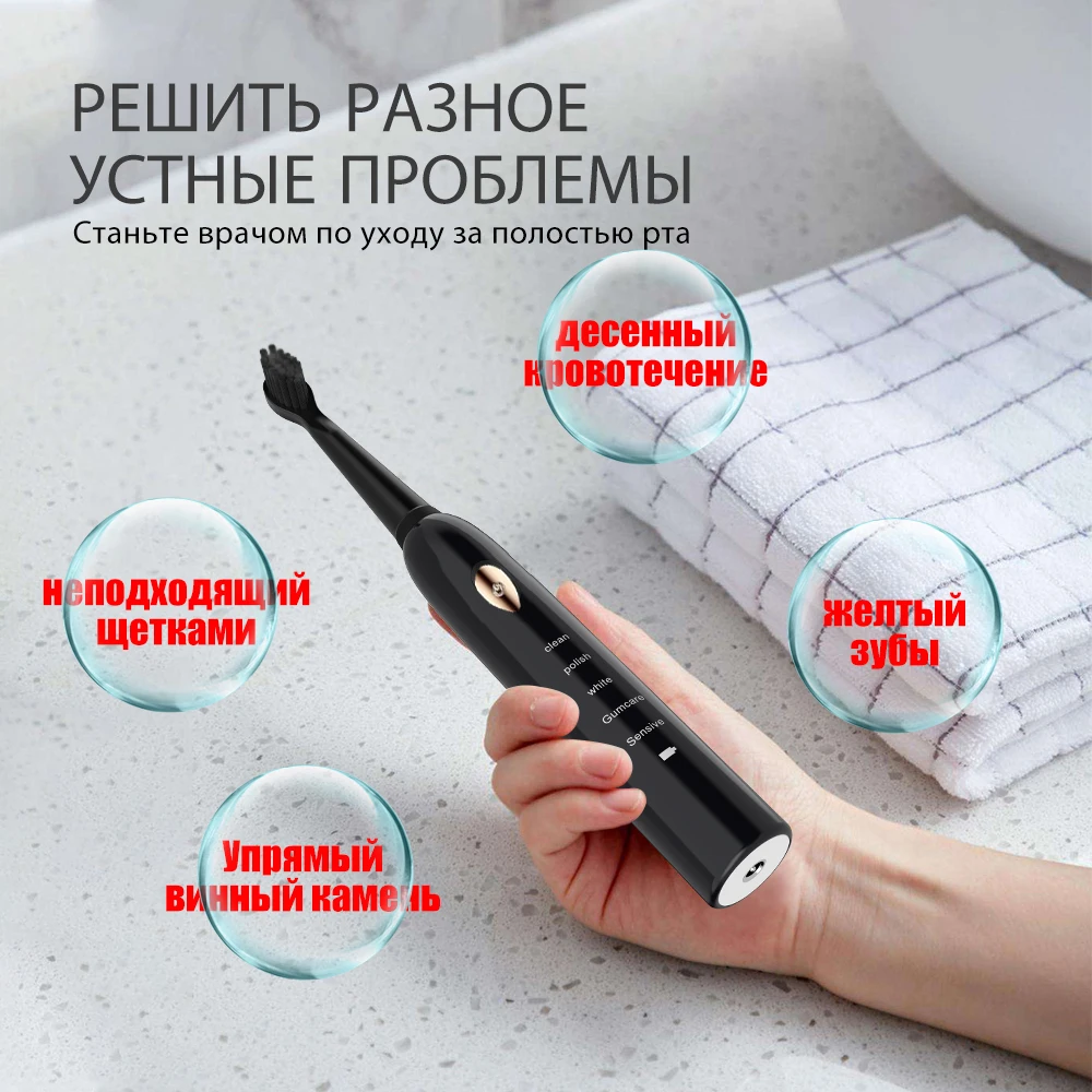 Щетка Зубная ультразвуковая аккумуляторная, для взрослых с таймером, моющаяся