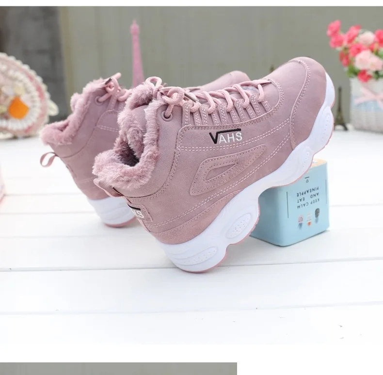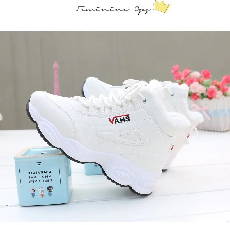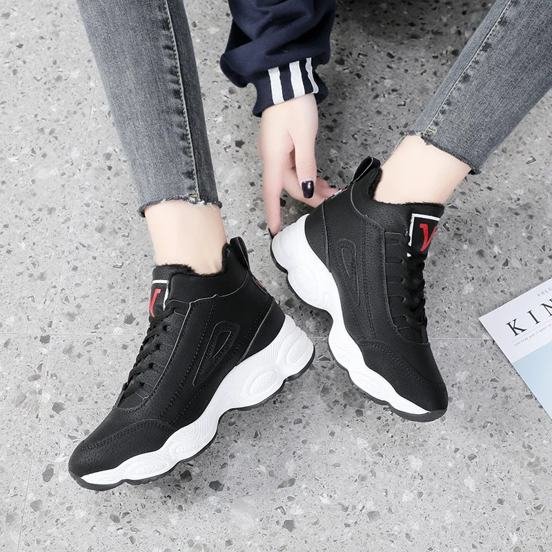 Женские кроссовки на толстой подошве, теплые плюшевые высокие туфли...