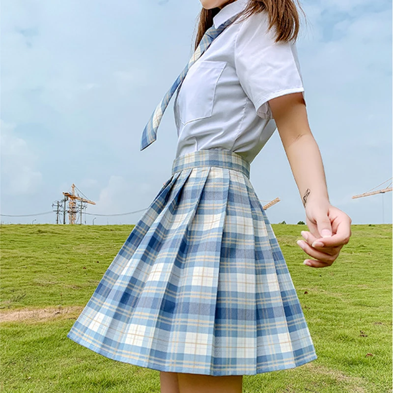 Женская плиссированная мини-юбка в клетку, Милая клетчатая юбка с завышенной талией в Корейском стиле, лето 2020