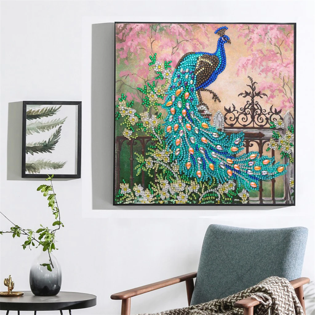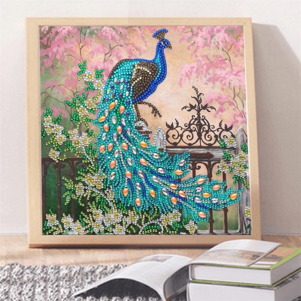 Алмазная живопись особой формы с узором павлина, алмазная вышивка, ...