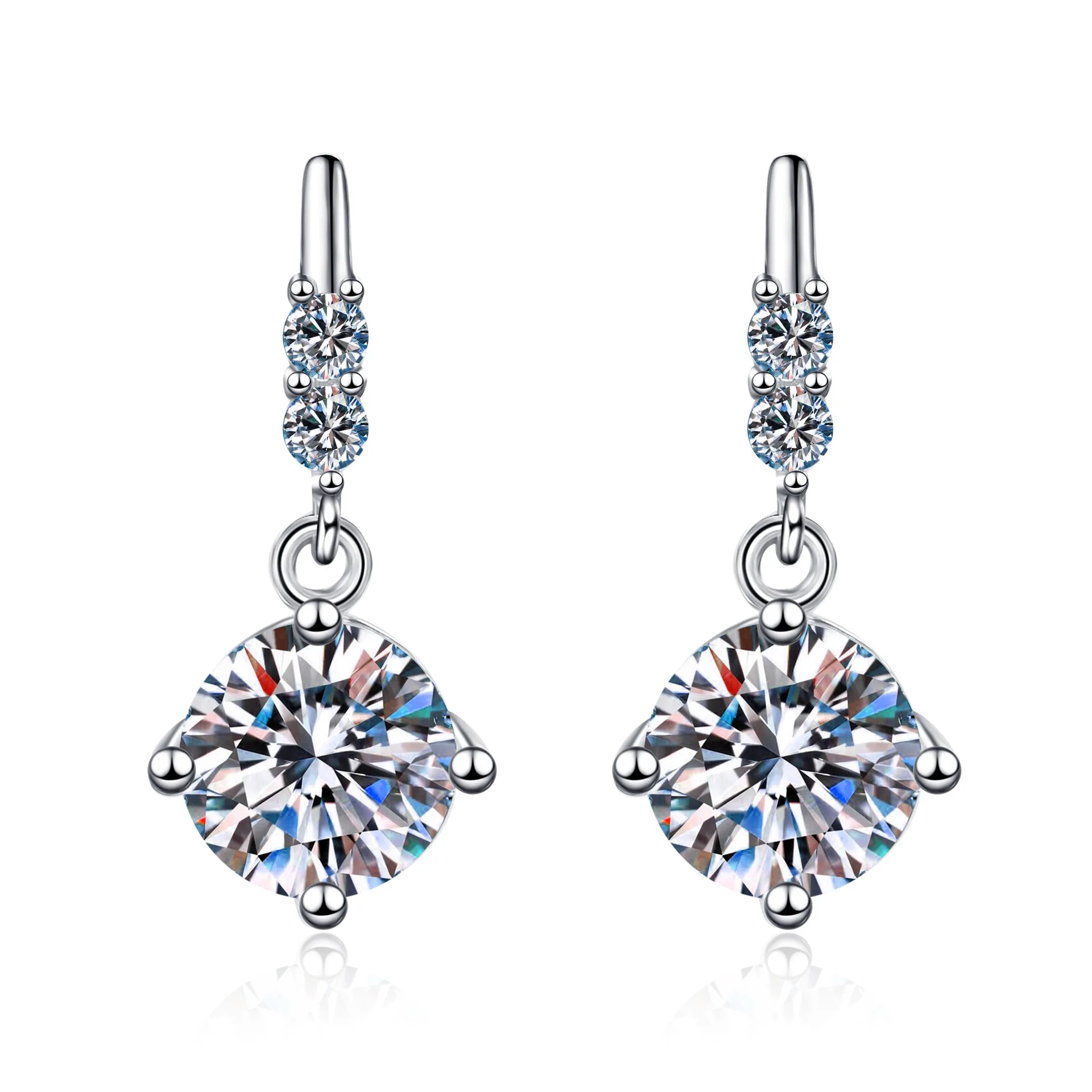Серьги-подвески BOEYCJR из серебра 925 пробы с муассанитом, 1 карат