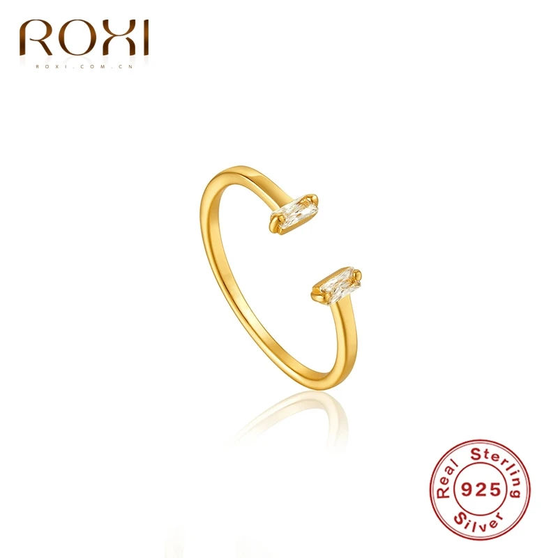 Женские открытые кольца ROXI с двумя квадратными камнями, обручальные кольца из стерлингового серебра 925 пробы, ювелирные изделия