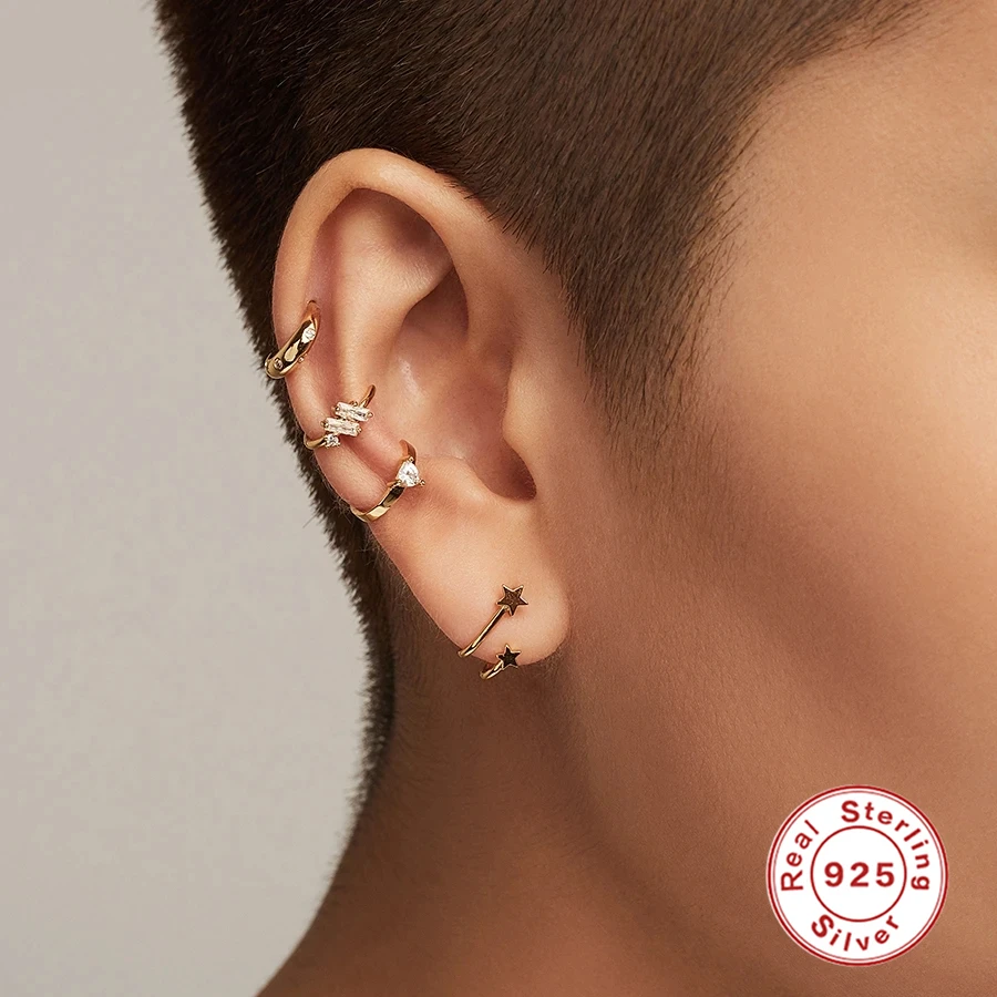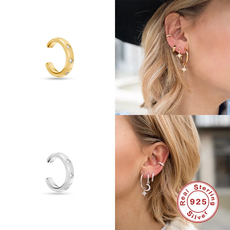 925 Sterling Silver EarringsGold/Silver Color Ear Cuff Earings