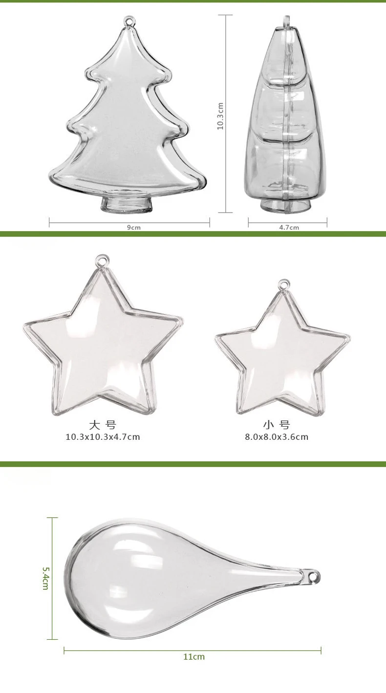 Прозрачный пластиковый шар 3-9 см, прозрачные открытые елочные укра...