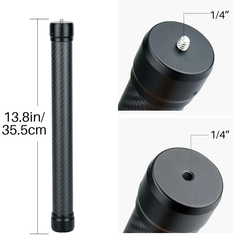 [Легкий удлинитель]-простая удлинительная палка помогает в исследовании большего количества возможностей и возможностей съемки на красивой фотографии.[Универсальная совместимость]-стандартный 1/4 дюймовый винт для широкого крепления. Подходит для различных стабилизаторов, включая DJI RONIN S / RONIN SC / OSMO Mobile 2 / ZHIYUN Crane V2. Помогает получить более широкий и высокий обзор в фотографии и видеосъемке. Или вы можете установить на другие устройства с резьбой 1/4 дюйма.[Легкий, но прочный]-вес всего 0,38 фунтов, но он мощный, чтобы поддерживать камеры стабилизатора карданного шарнира.[Хорошо сделано]-качественный корпус из углеродного волокна, обеспечивает комфортное удержание.Удлинитель можно установить на штатив/слайдер.Цвет: черныйМатериал: углеродное волокноРазмер: 35,5 смПосылка:1x удлинитель из углеродного волокнаТолько вышеуказанная посылка, другие товары не включены.Примечание: светильник и различные дисплеи могут привести к тому, что цвет товара на картинке немного отличается от реального. Допускается погрешность в измерениях +/- 1-3 см.