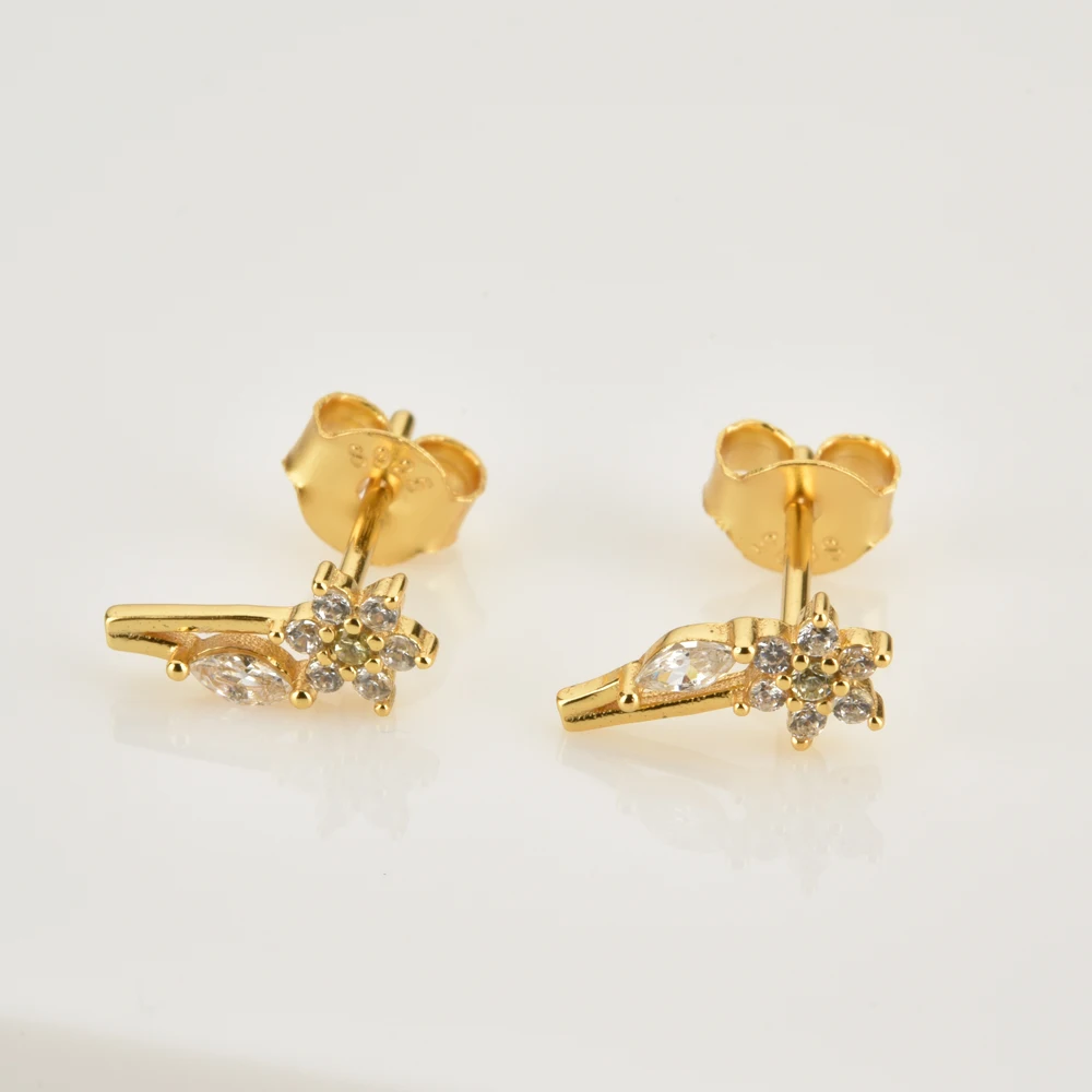 Серьги-гвоздики женские из 18-каратного золота, с цветком сливы, E5...