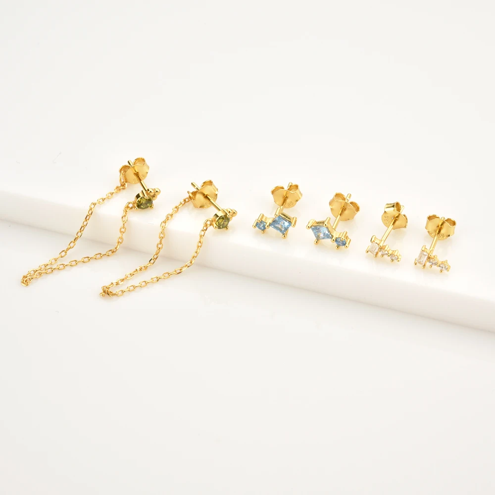 Серьги-гвоздики ANDYWEN из стерлингового серебра 925 пробы с цветны...