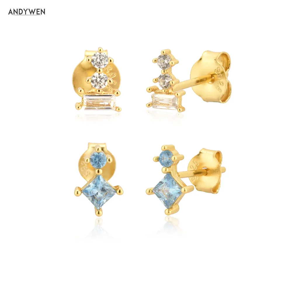 Серьги-гвоздики ANDYWEN из стерлингового серебра 925 пробы с цветны...