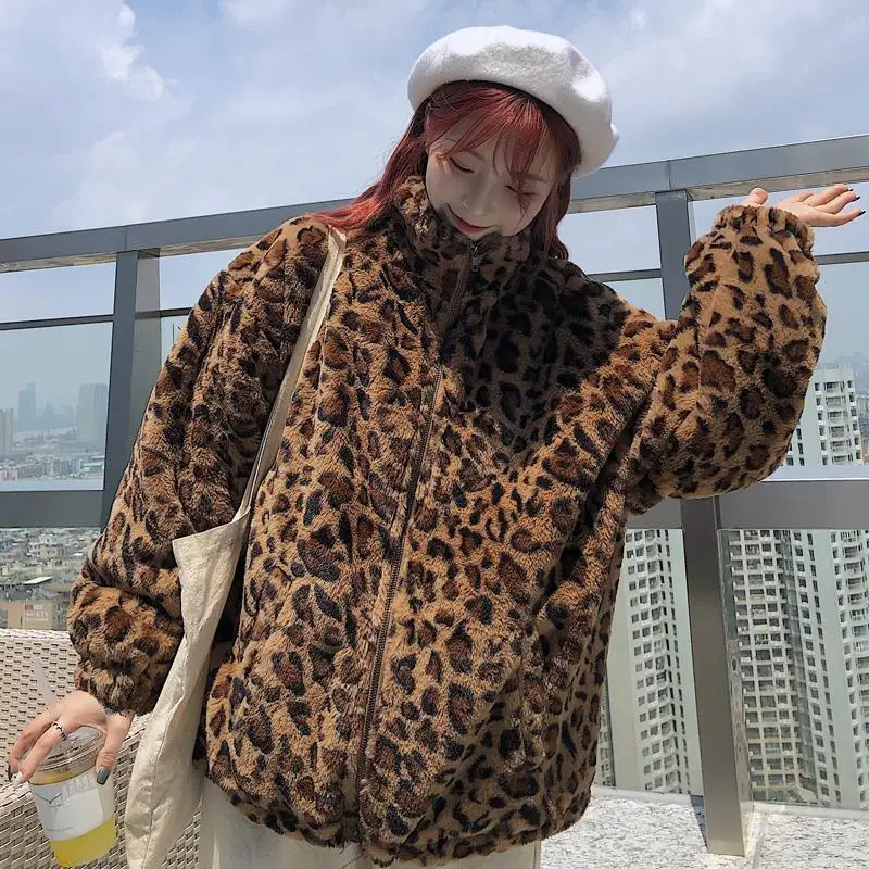 Зимняя женская куртка, винтажная, в стиле Харадзюку, с леопардовым принтом, воротником-стойкой, на молнии, женская верхняя одежда, Свободный Пушистый Топ