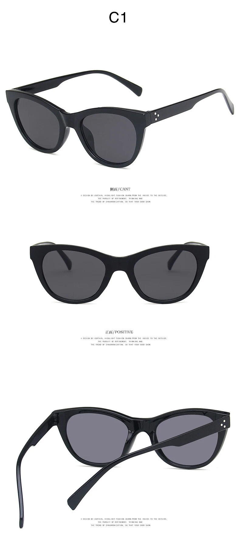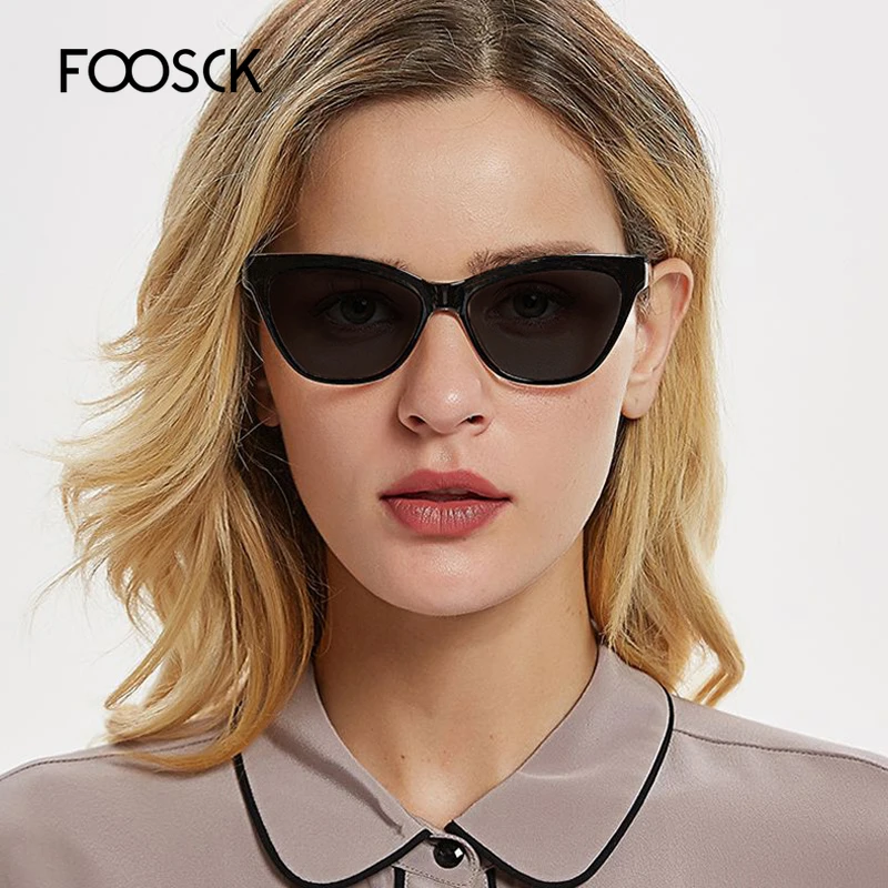 Солнечные очки кошачий глаз женские, винтажные солнцезащитные аксессуары в чёрной оправе, с прозрачными линзами