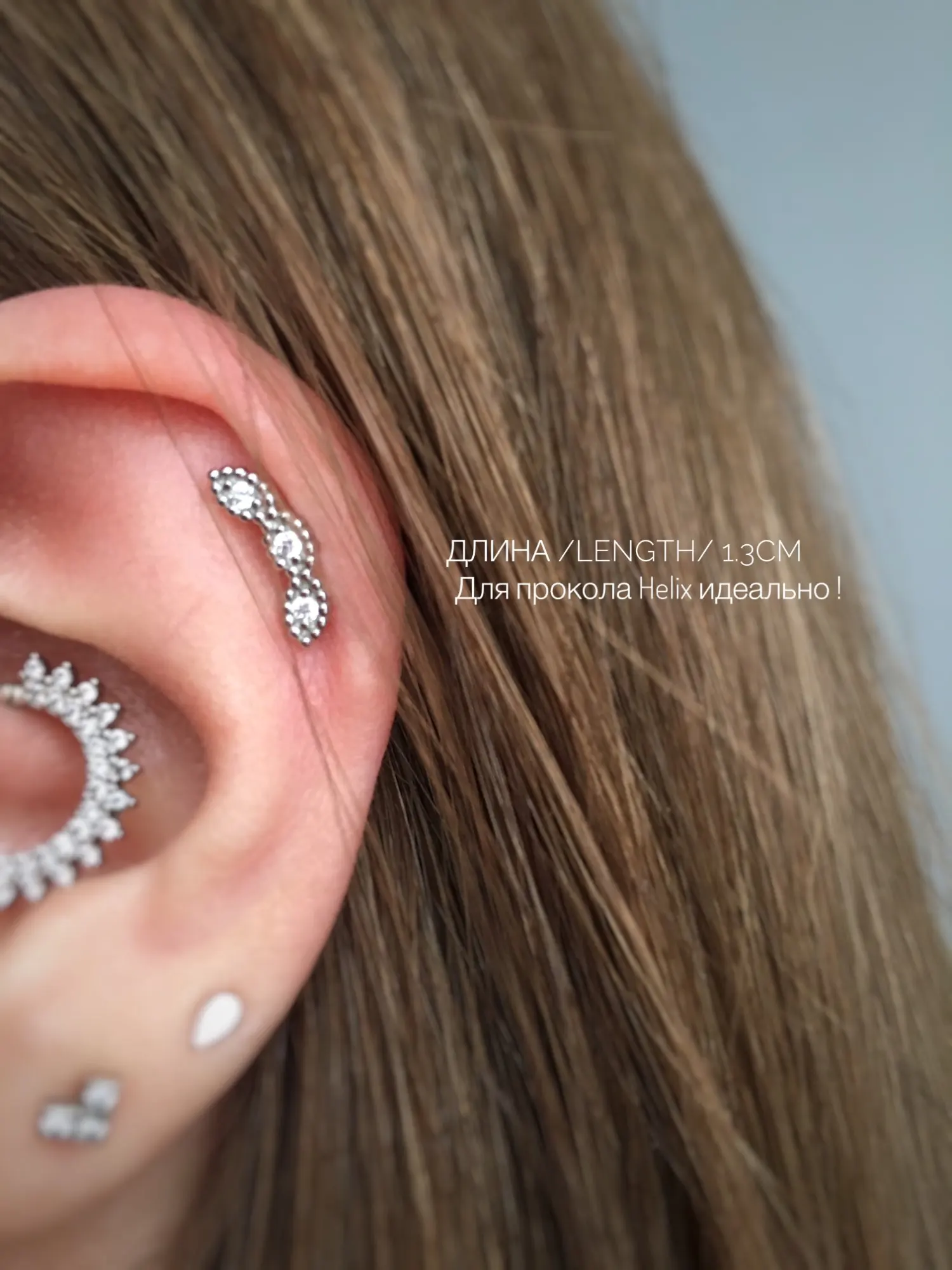 Серьги-кольца для пирсинга женские с кристаллами AIDE 925 пробы, се...