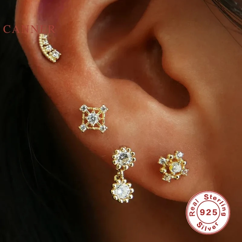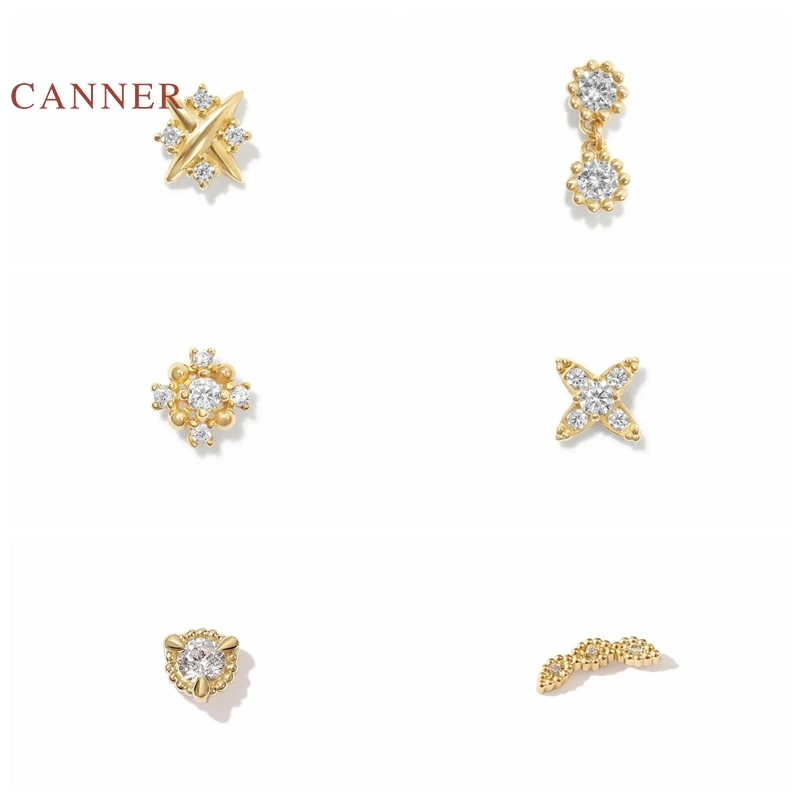 Женские серьги-гвоздики CANNER, серебряные серьги для тела с микро-...