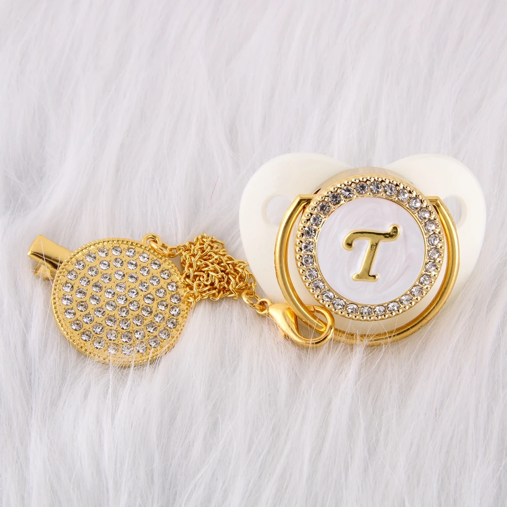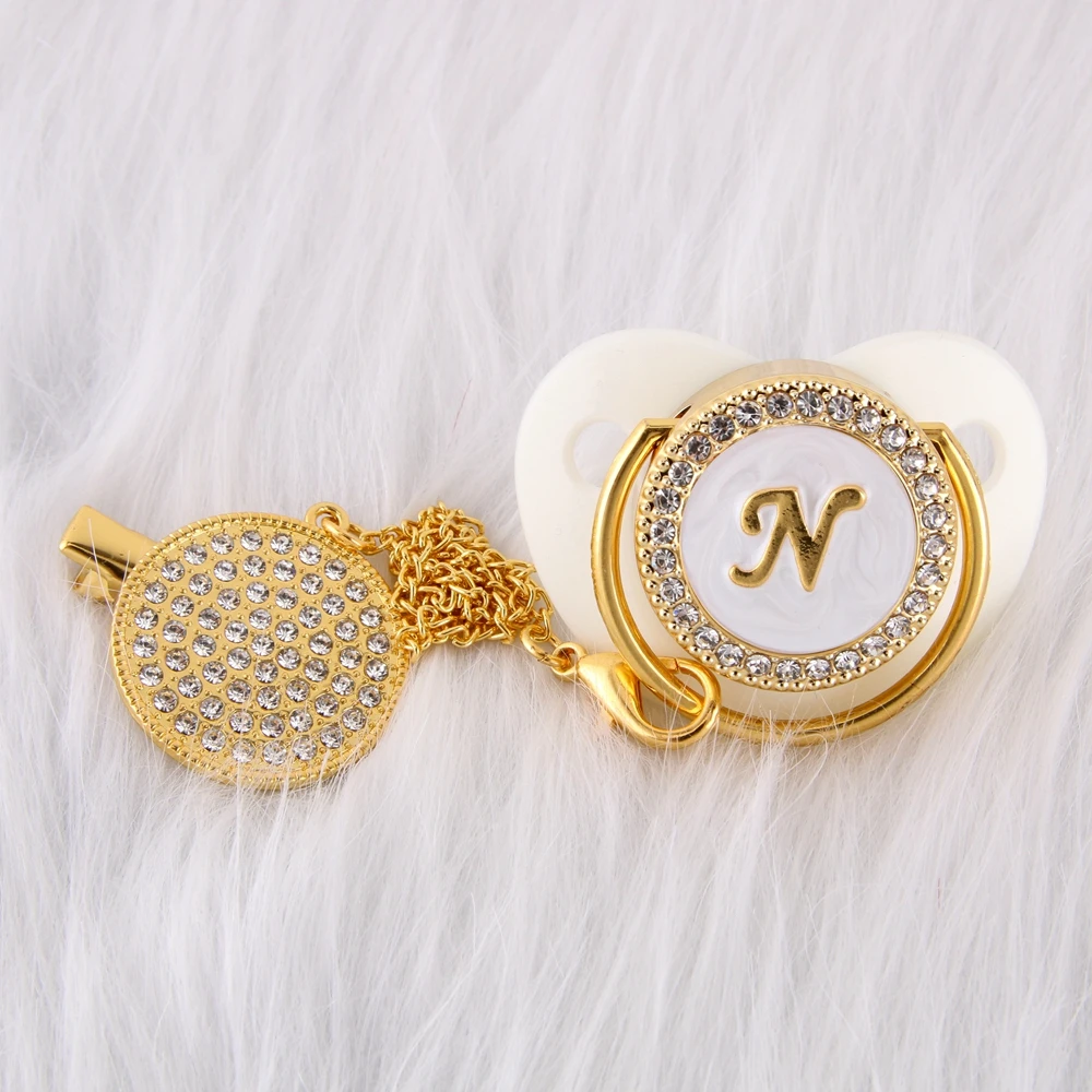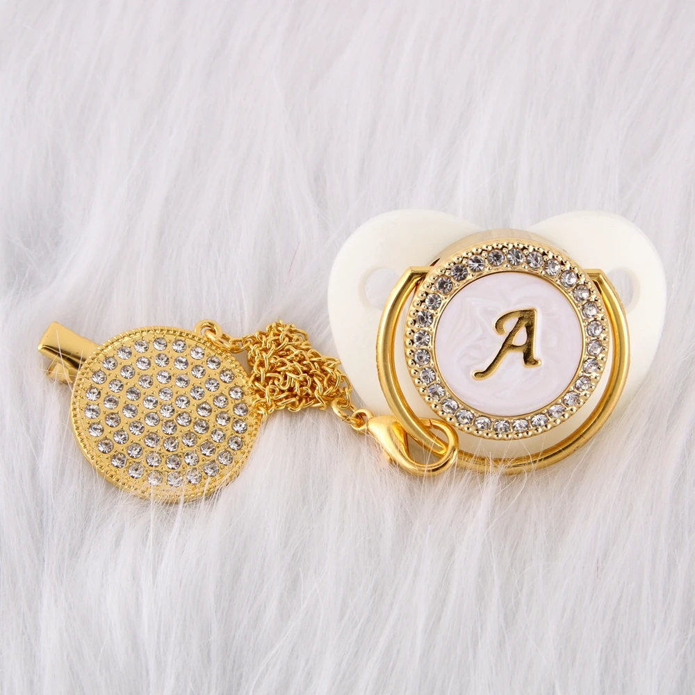 Стильный, с блеском золота соски-пустышки с Стразы 26 букв с гравир...