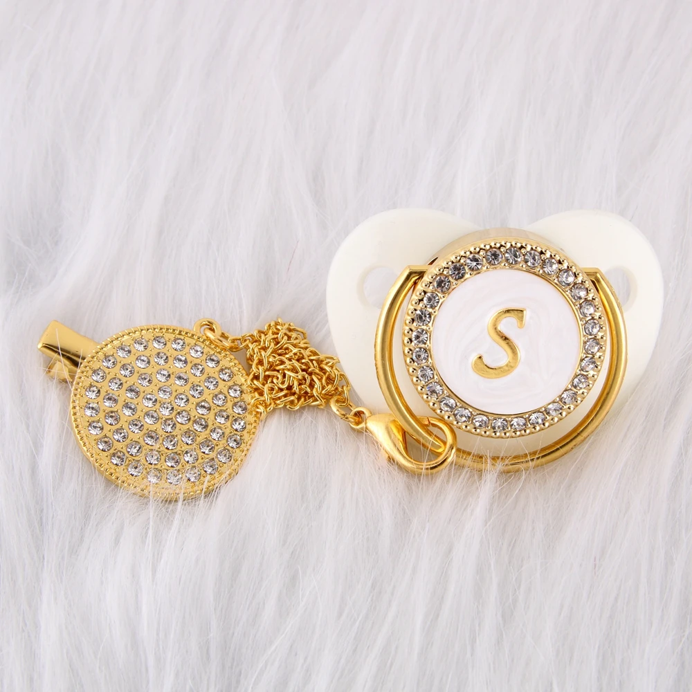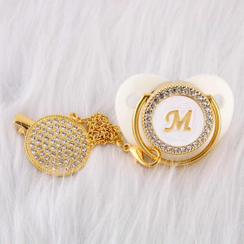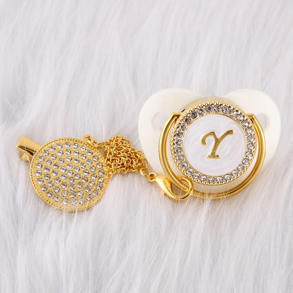 Роскошные золотые 26 инициалов разы Детская Соска с зажимами Chupet...
