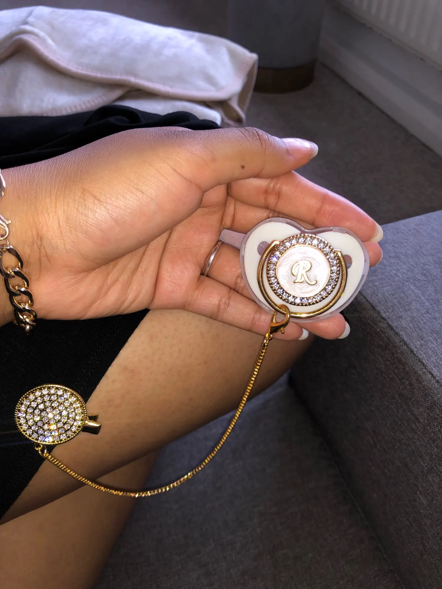 Роскошная детская соска-пустышка с элегантными инициалами и надпись...