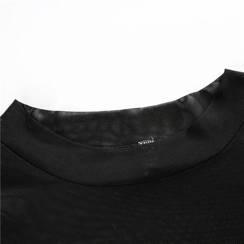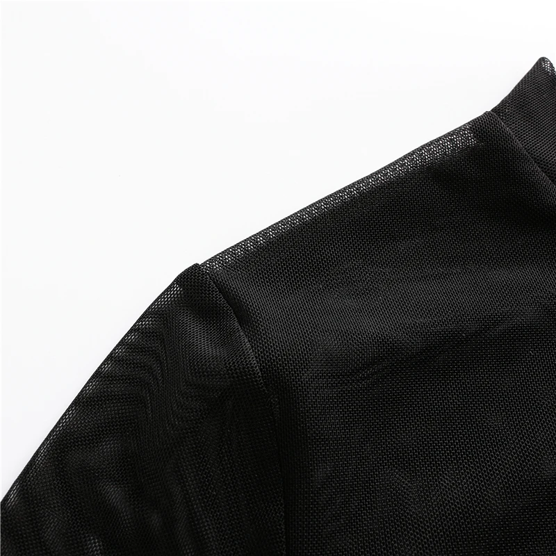 Сексуальный женский укороченный топ, сетчатый рукав, футболка, сексуальные топы, открытые Прозрачные топы, женская футболка, черный топ, Повседневная футболка, футболки